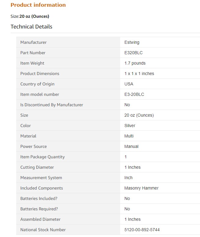 รุ่น E3-22Pรายละเอียด - ตัวค้อน: โลหะเหล็กกล้า ตีขึ้นรูปชิ้นเดียวไม่มีเชื่อมต่อ |